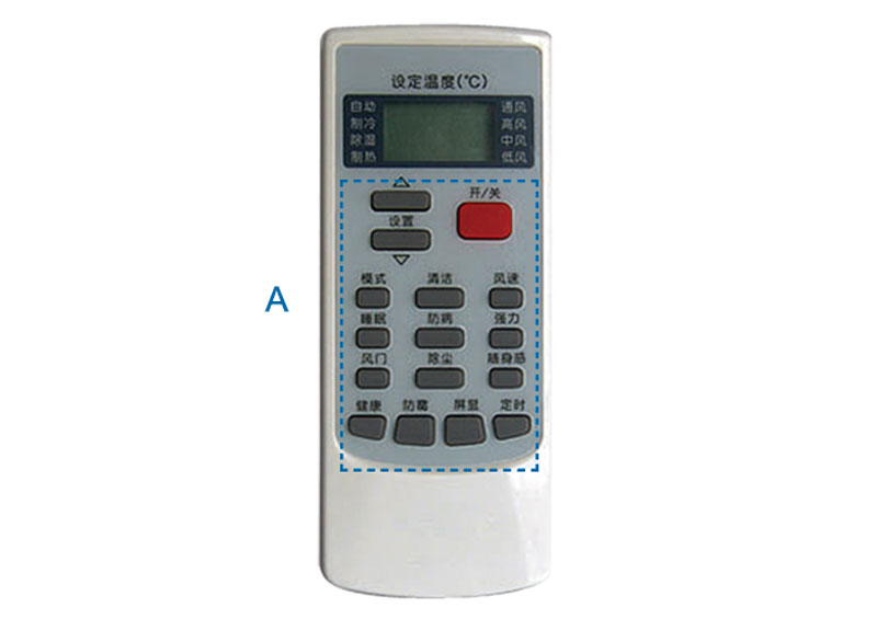 A區內按鍵的數量可以根據需要適當增減